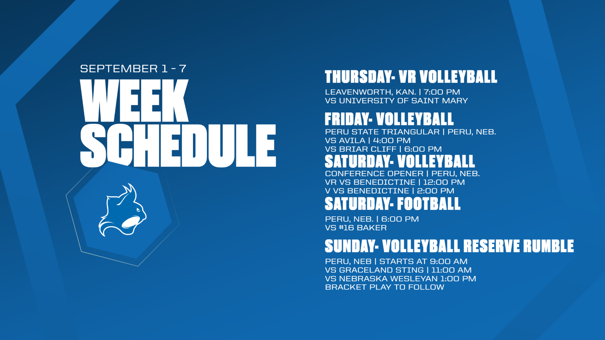Volleyball will travel to Leavenworth, Kansas for non-conference matchups against University of Saint Mary at 3:00pm and Haskell Indian Nations at 5:00pm.